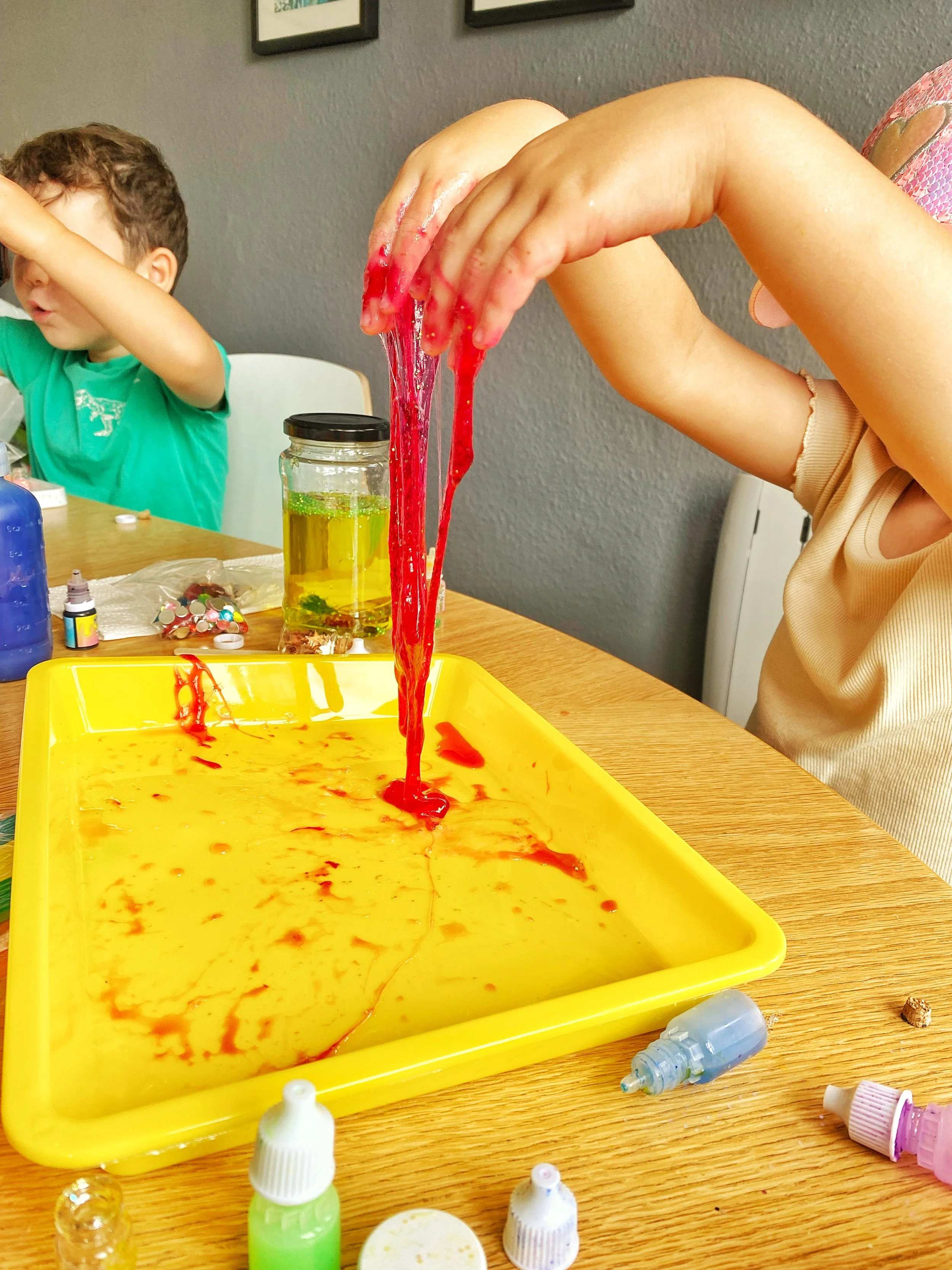 OUR july CREATIVE CLUB INCLUDED MAGIC POTIONS, SLIME, WOODEN HOUSE PAINTING AND COLOURED CLAY.